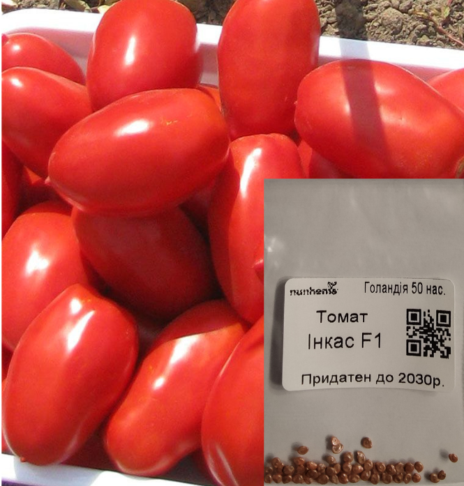 Томат Інкас F1 Виробник Nunhems (Голландія). Опис томат Інкас F1. Широковідомий гібрид раннього томату голландської селекції. Час дозрівання плодів 90-100 днів. Гібрид відрізняється високою врожайністю, ідеальний для переробки будь-яких видів (у тому числі цільноплідне консервування без шкірки) та свіжого ринку. Томат Інкас F1 зав’язує томати перцеподібної форми, насиченого червоного забарвлення, внутрішня м’ясиста структура. Середня маса томатів 80-100 г, високі якості транспортування. Гібрид чудово відгукується на позитивний агрофон. На найкращих полях неодноразово досягалася врожайність до 120 т/га.