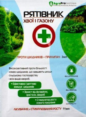 Вага 11 мл.+3 мл. Рятівник хвої та газону 3 мл + 11 мл – садовий інсектицид, фунгіцид, стимулятор росту та добриво. Це потужний захист саду від шкідників та патогенів. Інсектицид і фунгіцид із прилипачем